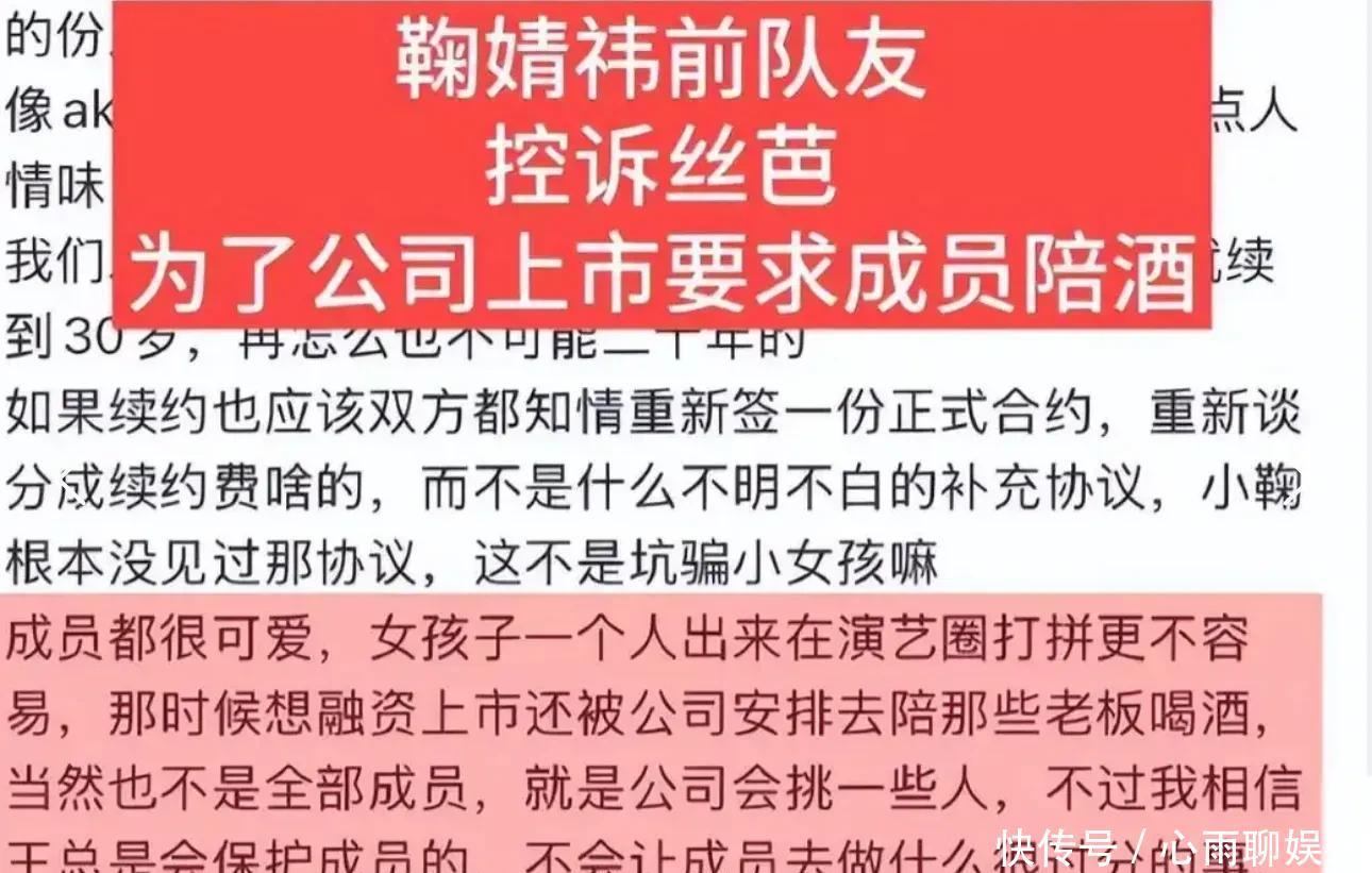 近几日这波风暴还真不是他主动挑的头。鞠婧祎和丝芭传媒的解约案闹得沸沸扬扬,原本跟王思聪八竿子打不着,可偏偏一桩旧瓜又把他拽回了大众视线。曾艳芬爆出猛料,说丝芭女团成员被安排陪老板吃饭、饮酒,还晒出了当年的聊天记录。照片里王思聪身处C位,旁边是身着兔女郎装的姑娘们起舞作陪。网友一看这画面,脑补的桥段都快能写出一部偶像剧了。难怪当年王思聪公开怼鞠婧祎,原来是因为“记仇”——谁不给他面子,谁就得被怼。丝芭传媒立马跳出来喊冤,还晒了报警回执。结果曾艳芬直接甩出与高层的对话,逼得公司赶紧撤下回应。这场本来和王思聪无关的解约案,愣是把他早年的那些圈内乱象挖了个底朝天。